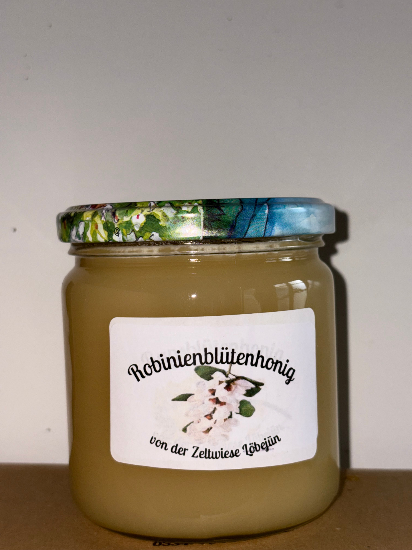 Honig aus eigener Imkerei. Unser Robinienhonig hat leichte Rapsanteile und besticht deshalb mit seiner feinen Cremigkeit und sanften unaufdringlichen Süße.